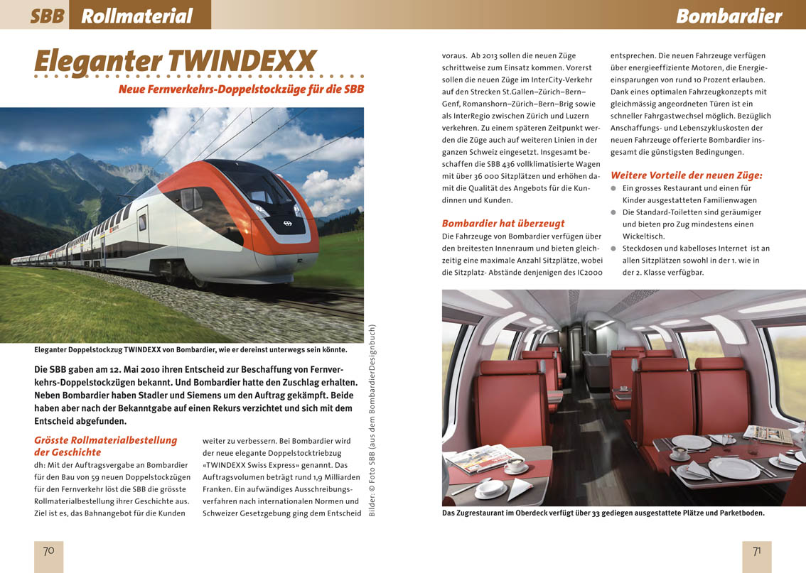 Das Jahrbuch 2011 enthält wiederum viele interessante Reportagen und Bilder von der bunten Fahrzeugvielfalt der Schweizer Bahnen. Zudem liefert das Bahn-Jahrbuch auch Routenvorschläge für Ausflüge und Bahn-Wanderungen in der Schweiz.