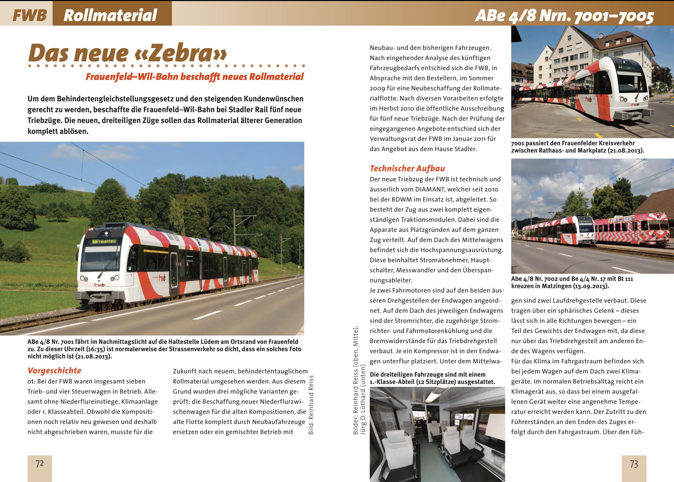 ROLLMATERIAL: In ganz Europa unterwegs – die neue Vectron-Lokomotive von Siemens / Generationenwechsel: Fahrzeug-Rochade bei der Zentralbahn / Inbetriebnahme Be 510 – sechs neue Zweispannungs-Triebzüge am Uetliberg / Das neue «Zebra»: Frauenfeld–Wil-Bahn beschafft neues Rollmaterial / Die Basler Be 4/4 – die letzten Schweizer Standard-Motorwagen / Der Bücherwagen: Leseabteil und Kulturveranstaltungen im «GlarnerSprinter» / BLS verkauft GTW an SBB / Modernisierung Re 460 / Coffee House auf Rädern –Starbucks und SBB lancieren Weltpremiere