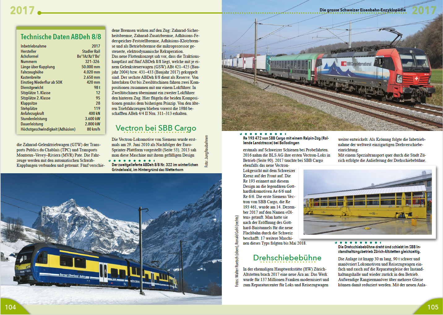 (Re 193) und dem SBB-Hochgeschwindigkeitszug «Astoro» (RABe 503) die Niederflurzüge wie der «KISS» (RABe 511) für die S-Bahn Zürich, der BLS «MUTZ» (RABe 515), der SBB FV-DOSTO TWINDEXX (RABe 502), der SBB «Giruno» (RABe 501), der SOB «Traverso» (RABe 526) und der RhB «Capricorn» (ABe 4/16). Als Meilenstein in der Geschichte der Schweizer Bahnen galt die Eröffnung des Gotthard-